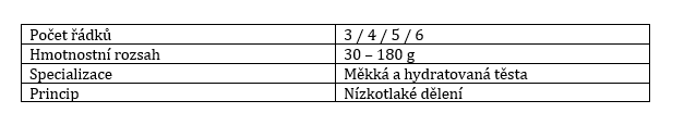 Konstrukce umožňuje flexibilní přizpůsobení pro různé typy měkkých těst bez kompromisu na výkon nebo kvalitu.