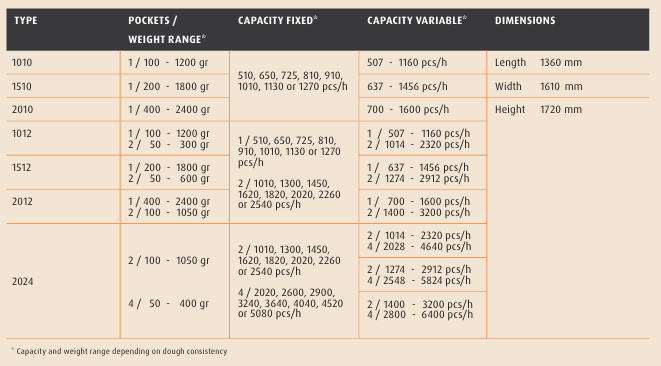 Zařízení podporuje různé druhy těst, od standardních až po těsta s vyšší viskozitou, a přispívá k vyšší opakovatelnosti hmotnosti kusů, snížení variability ruční práce a plynulému technologickému toku ve výrobě.