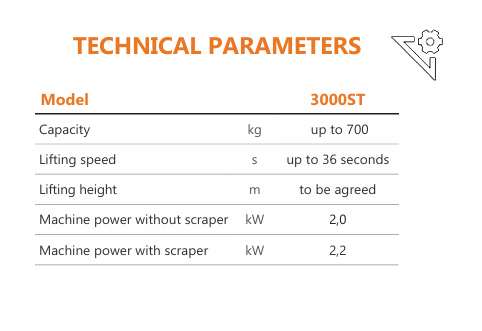 Díky vysoké nosnosti (až stovky kilogramů) a krátkému cyklu zdvihu výrazně zrychluje manipulaci a zvyšuje efektivitu provozu.